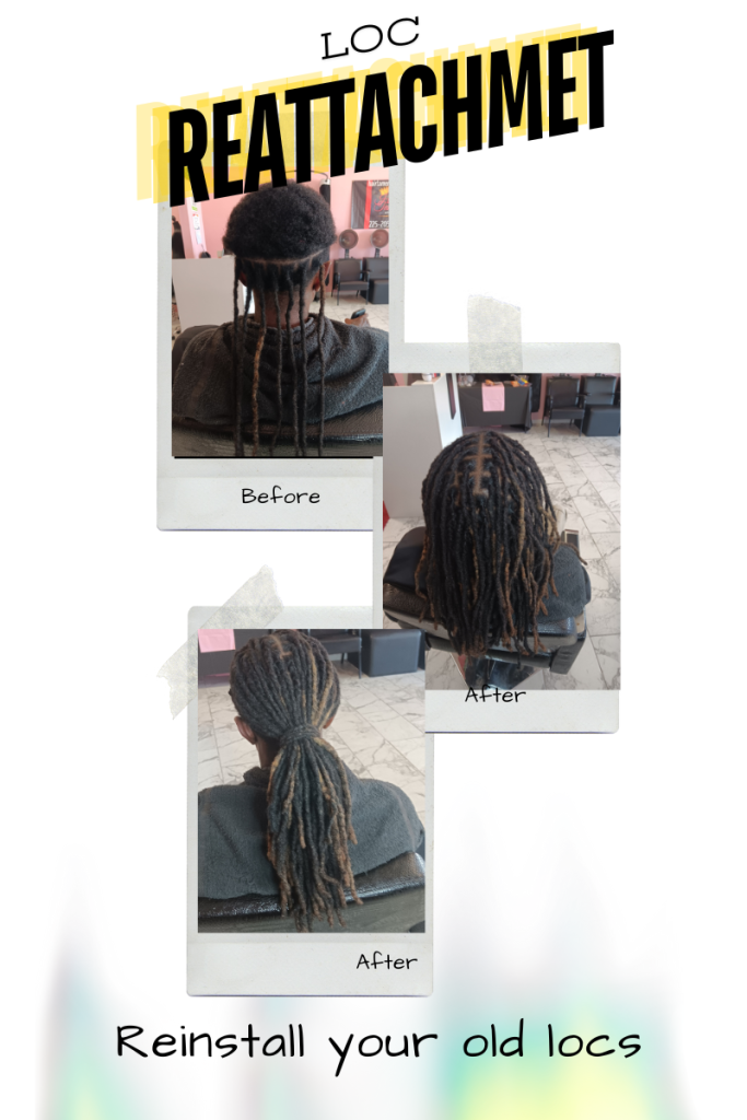Start your loc journey with comb coils two strand twist, or interlocks. Maintain your look with retwist, styling and healthy loc care