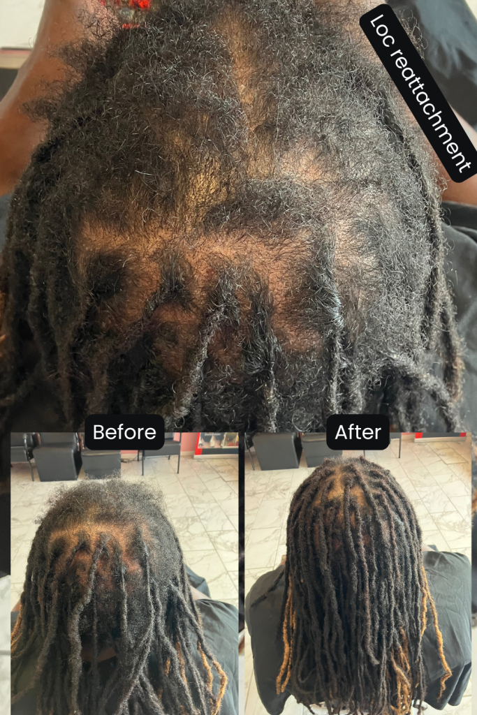 Restore the strength and fullness of your locs with our loc repair services in Baton Rouge. Whether you’re dealing with thinning, breakage, or want to add extensions, our professional loctician provides seamless, natural-looking results.
