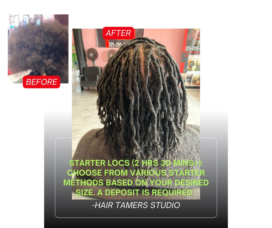 Starter Locs Baton Rouge Begin your loc journey with expert starter locs at Hair Tamers Studio. Choose comb coils, two-strand twists, or interlocks for a healthy, natural foundation that will last a lifetime.